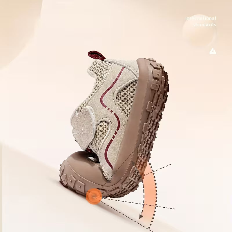 Découvrez nos baskets FlexiMove™, conçues pour les enfants actifs ! Ces chaussures beige et bordeaux allient design sportif moderne et philosophie barefoot pour accompagner votre enfant dans toutes ses activités avec un confort exceptionnel et une liberté de mouvement totale.